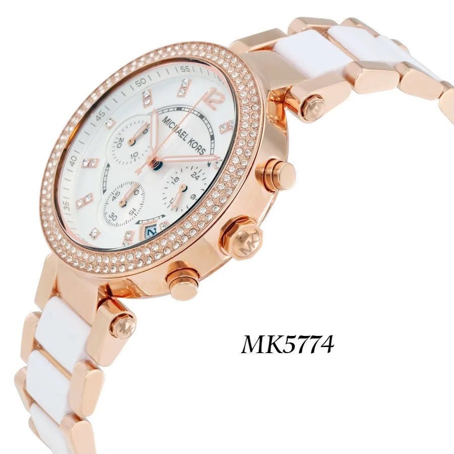 Michael Kors Mk Pink White Dial Diamond Ladies Watch